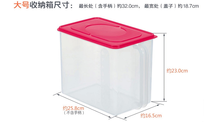 用途:用于儲藏大米、食品、干貨等,帶把手設(shè)計(jì),使用方便,抗菌加工,抑制細(xì)菌增長,安全衛(wèi)生,體積小不占空間;帶蓋設(shè)計(jì),可保持存放食材的衛(wèi)生;同時(shí)可以疊加放置,節(jié)約空間。容量大,也可用于廚房面粉等其它五谷雜糧等的儲放。