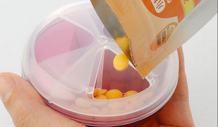 收納整理 > 雜物收納 【INOMATA】便攜藥盒旋轉(zhuǎn)隨身三分格