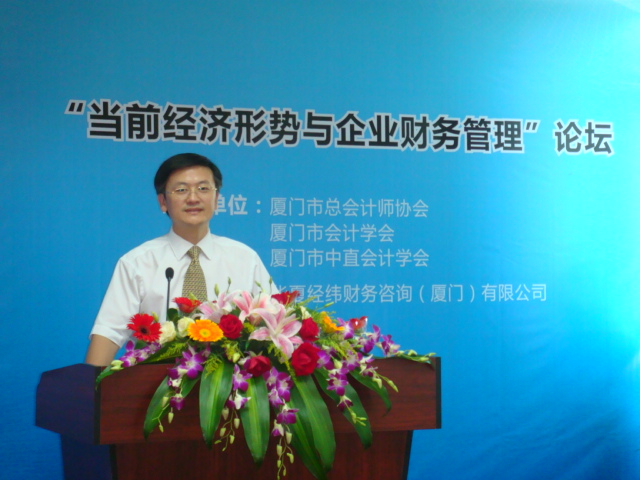 2011年8月18日下午,由廈門市總會計師協(xié)會、廈門市會計學(xué)會和廈門市中直會計學(xué)會聯(lián)合主辦、華夏經(jīng)緯財務(wù)咨詢(廈門)有限公司協(xié)辦的題為“當(dāng)前經(jīng)濟形勢與企業(yè)財務(wù)管理”的主題論壇在廈門富興大廈B幢8樓華夏經(jīng)緯會議室成功舉辦。參加論壇的有廈門市財政局領(lǐng)導(dǎo),廈門市總會計師協(xié)會、廈門市會計學(xué)會、廈門市中直會計學(xué)會常務(wù)理事,廈門大學(xué)吳水澎、陳漢文、陳少華、傅元略等會計學(xué)資深教授、博導(dǎo),美國管理會計師協(xié)會IMA中國代表李蔚,以及部分企業(yè)總會計師、財務(wù)總監(jiān)等。